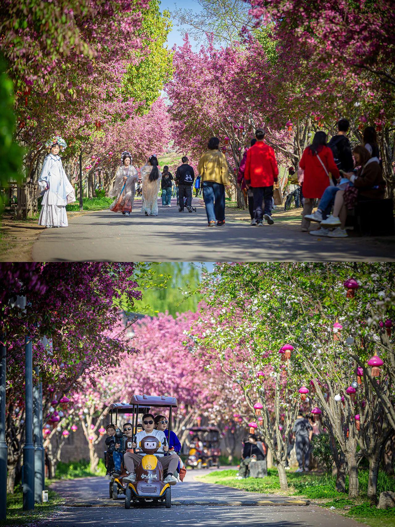 踏青赏春光,古韵新体验。海棠倾城的古巷、樱花纷扬的码头、梨花如雪的庭院……身着汉服的游客穿梭其中,手执油纸伞,静静欣赏着花丛与古建筑相映成趣的美景,仿佛置身于一幅古韵悠悠的画卷之中。或寻一处静谧,漫游摇橹船,穿梭于古运河之间,听着船妹子悠扬的歌声,感受着水乡的宁静与美好。