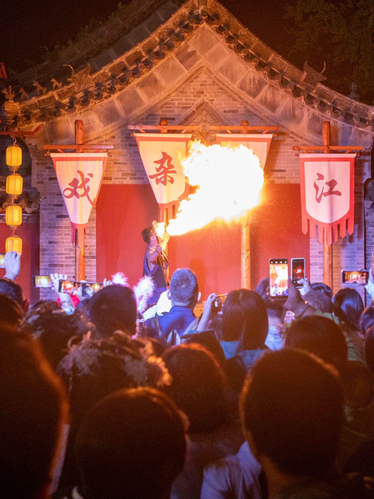 当暮色浸染古城,古建筑在灯光的映照下如梦如幻,一场场精彩的演艺盛宴将假期氛围推向高潮。铁水泼金的火龙钢花撕破夜幕,震撼人心的夜间演艺,城墙之上绽开的光影史诗……每帧画面都让游客们流连忘返。