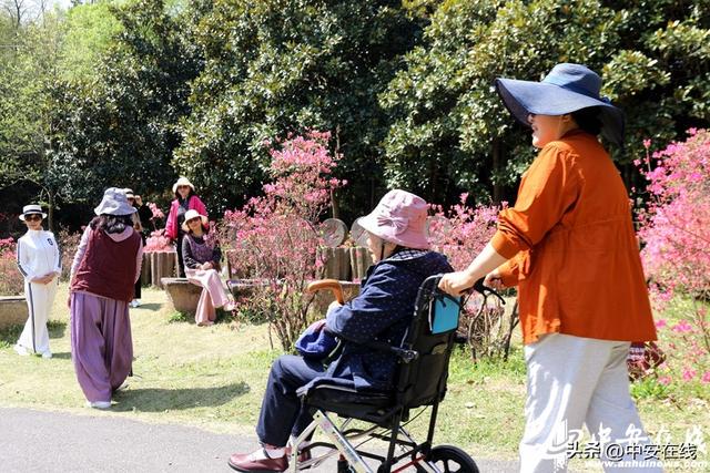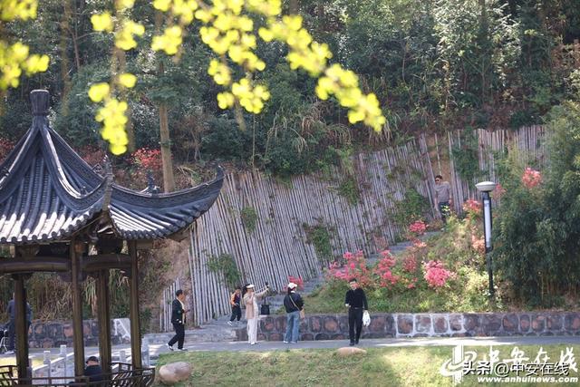 游客在九一六茶园景区内赏花、拍照