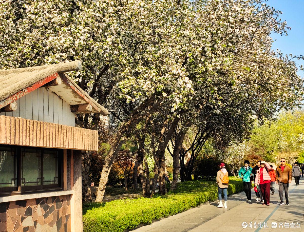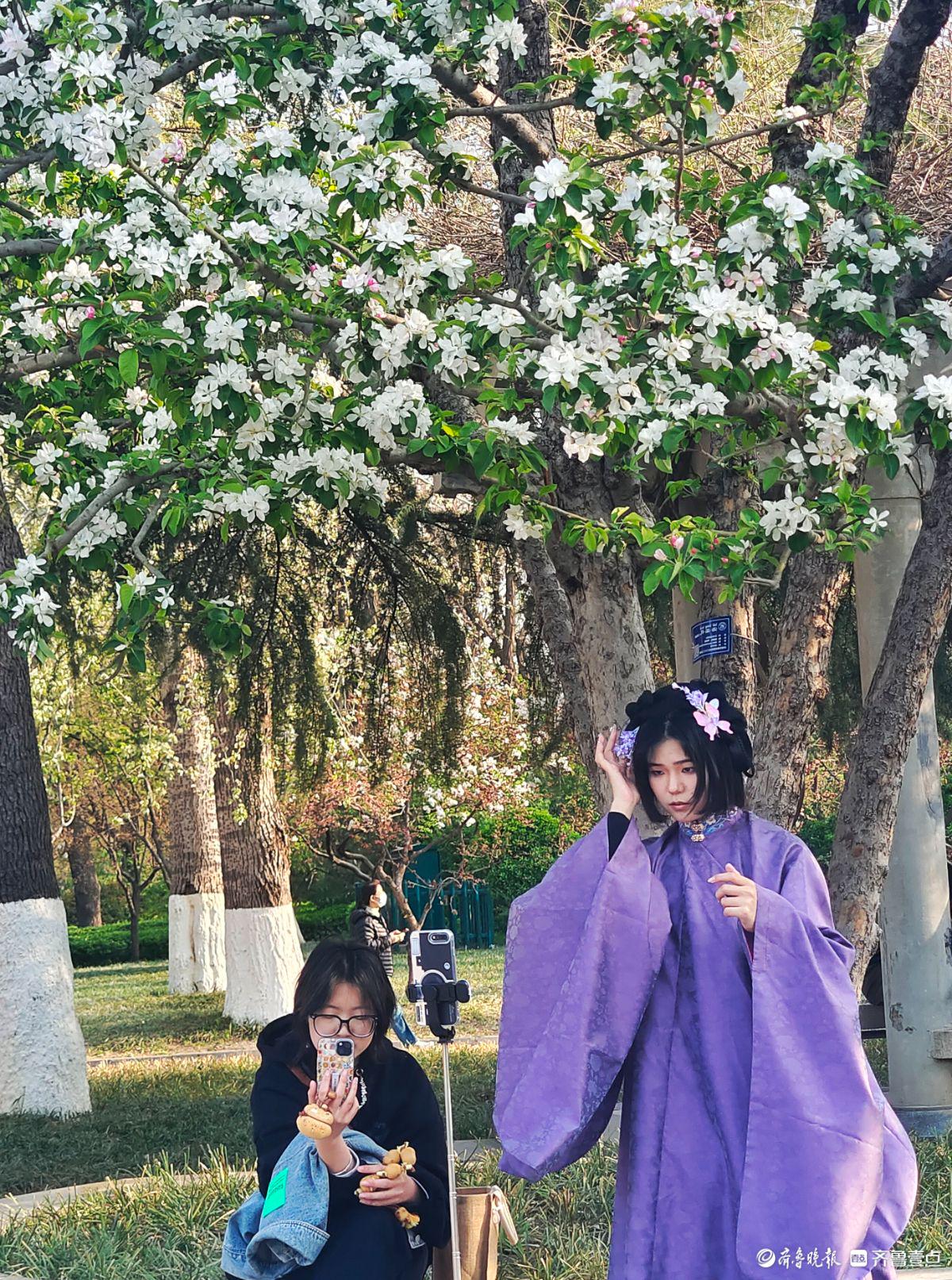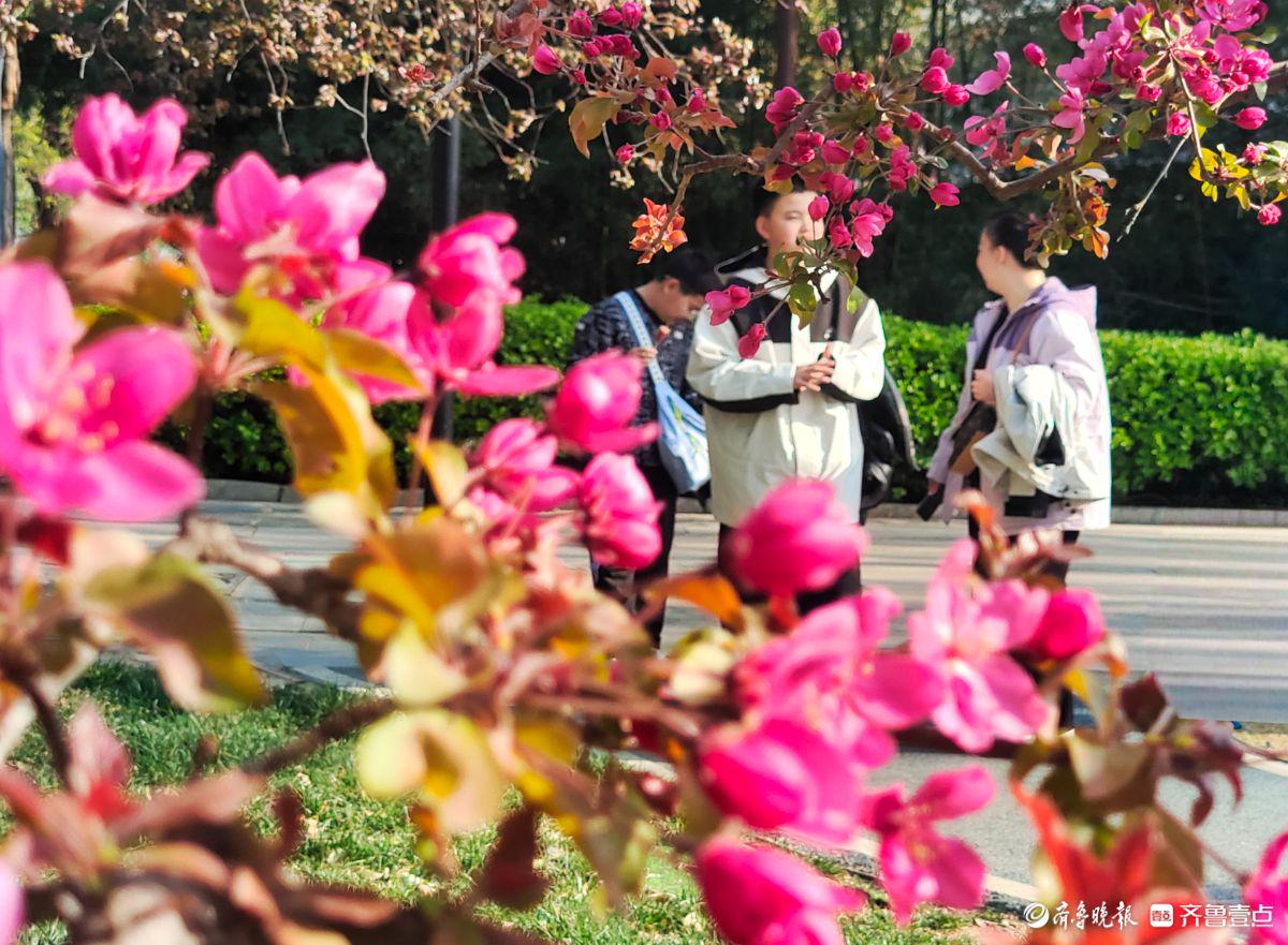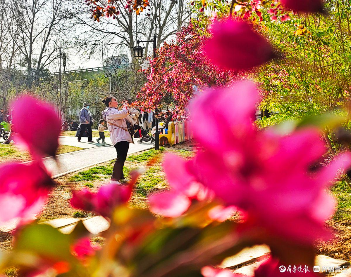 春回大地,繁花似锦。济南大明湖畔的桃花、梨花、海棠花竞相绽放,红得似火、粉得像霞、白得如雪,各种色彩交织成一片绚烂的花海,引得众多游客前来观赏拍照留念。 高军 摄