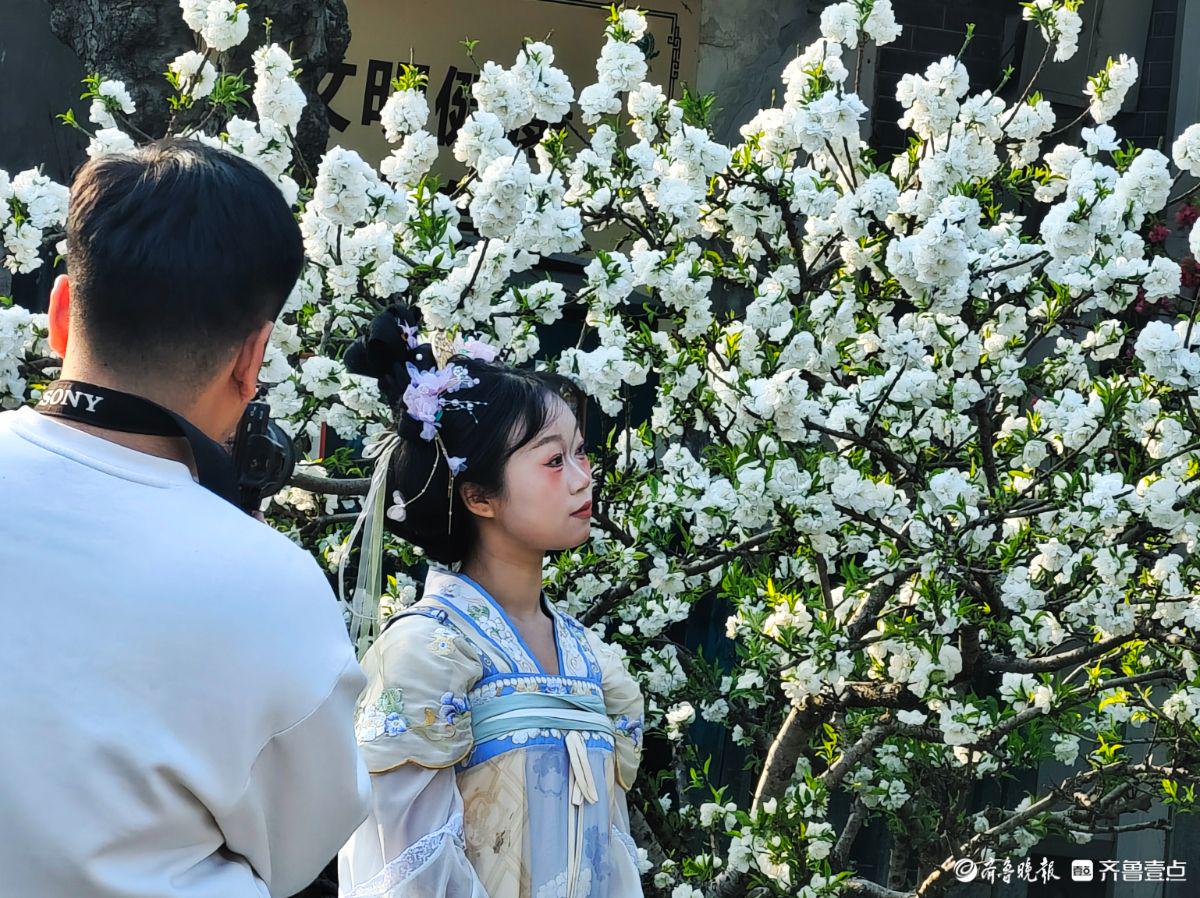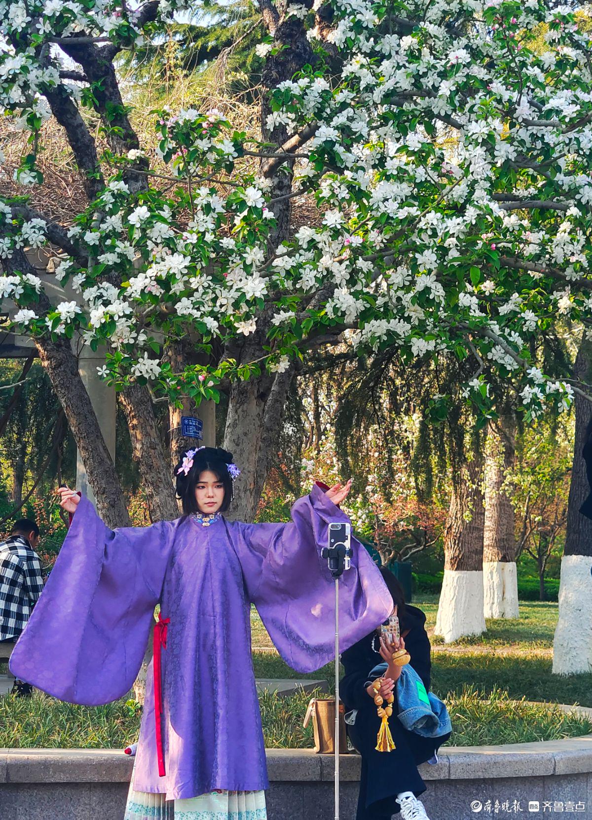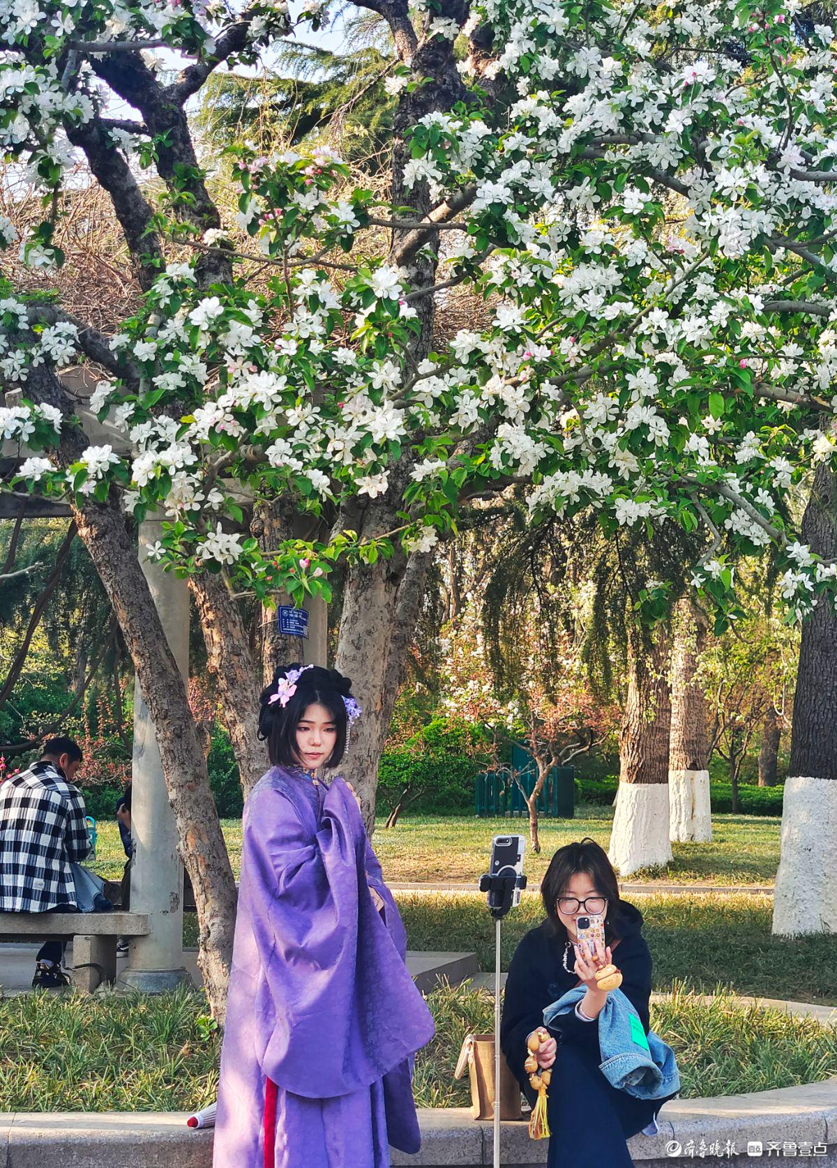 春回大地,繁花似锦。济南大明湖畔的桃花、梨花、海棠花竞相绽放,红得似火、粉得像霞、白得如雪,各种色彩交织成一片绚烂的花海,引得众多游客前来观赏拍照留念。 高军 摄