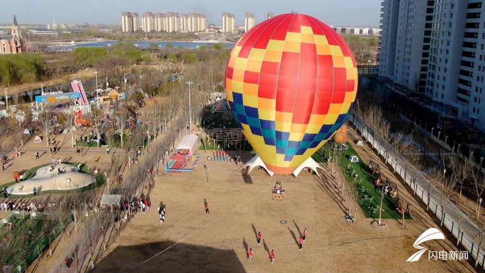 在聊城高新区九州洼月季旅游景区,每逢周末,亲子乐园便成为家长和孩子们春游的热门打卡地。景区今年全新推出的热气球体验项目,更是备受追捧,游客们排起长队,期待着一场独特的“云端之约”。游客李潇兴奋地说:“今天第一次坐热气球,升空的瞬间特别激动。高空视野特别开阔,能俯瞰整个景区,体验感超棒 ,强烈推荐大家来试试。”