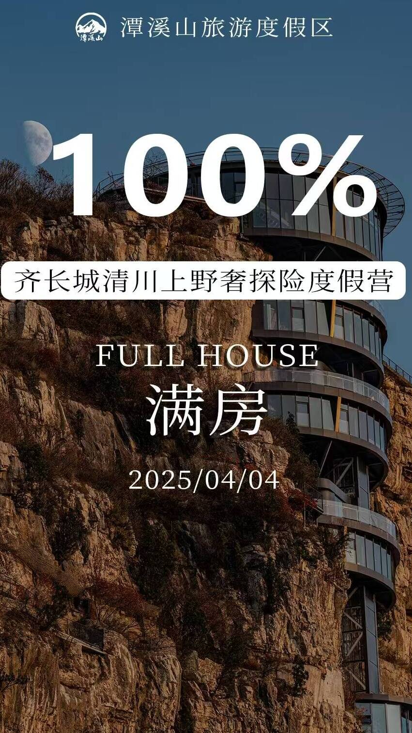 景区内齐长城清川上野奢探险度假营、高空酒店、森林木屋、潭溪山庄、游客中心酒店5家度假酒店连续满房。