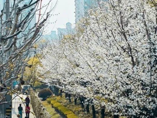 阳光洒下,恍然春已至,宜川公园内,花开正好,成为周边居民赏花休闲遛娃好去处。