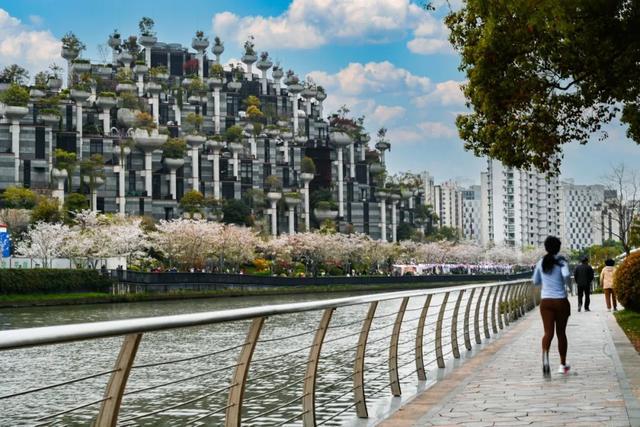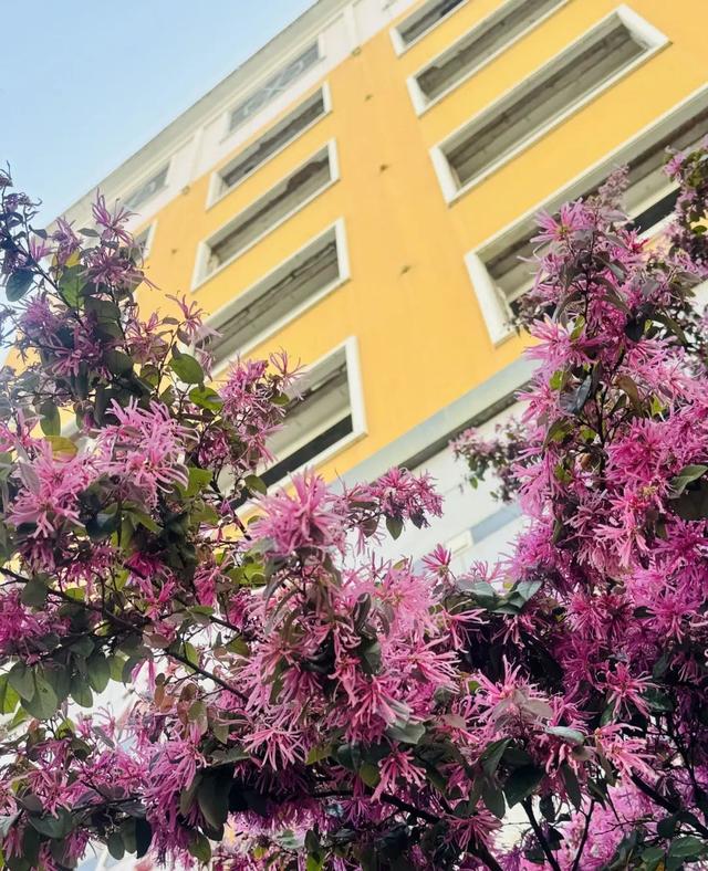 作为春天的绚烂色调,不止是宜川公园,在街道辖区的每个角落都可以看到粉色的“霞光”。