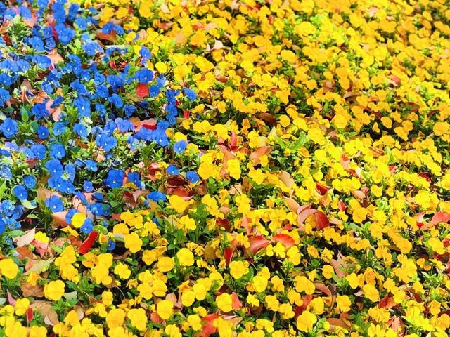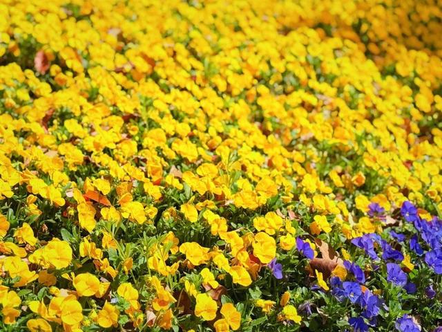 黄色的花儿在园圃中“翘笑”着,就着阳光一看,一片金色夺目而来,让人不由得眯上眼睛。