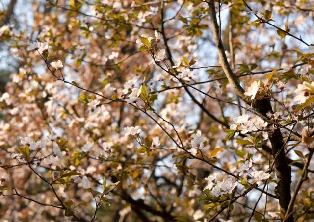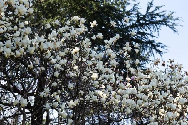 白色,如雪如玉温文尔雅,远远望去,让人置身于白雪之中,它为姹紫嫣红的春景添上了些纯净。