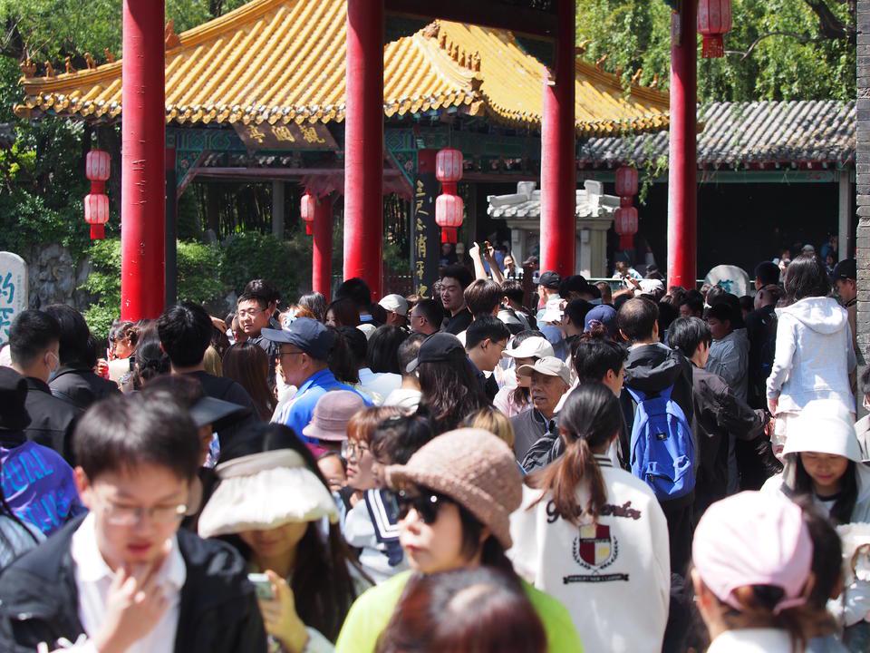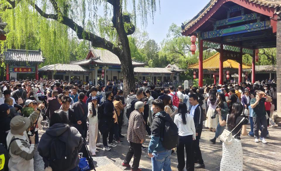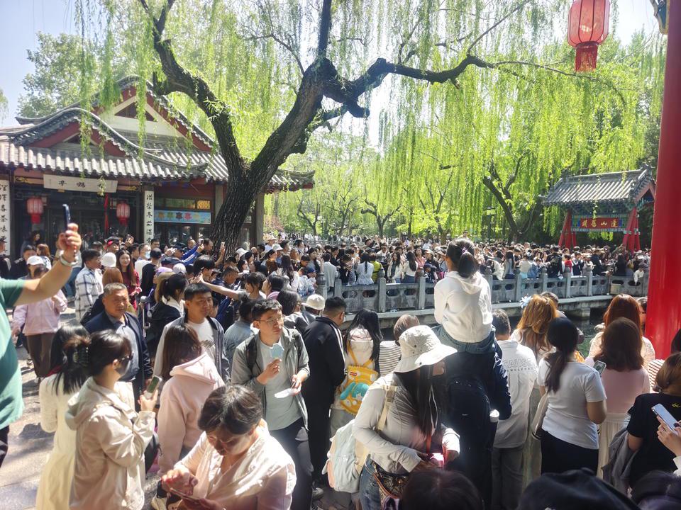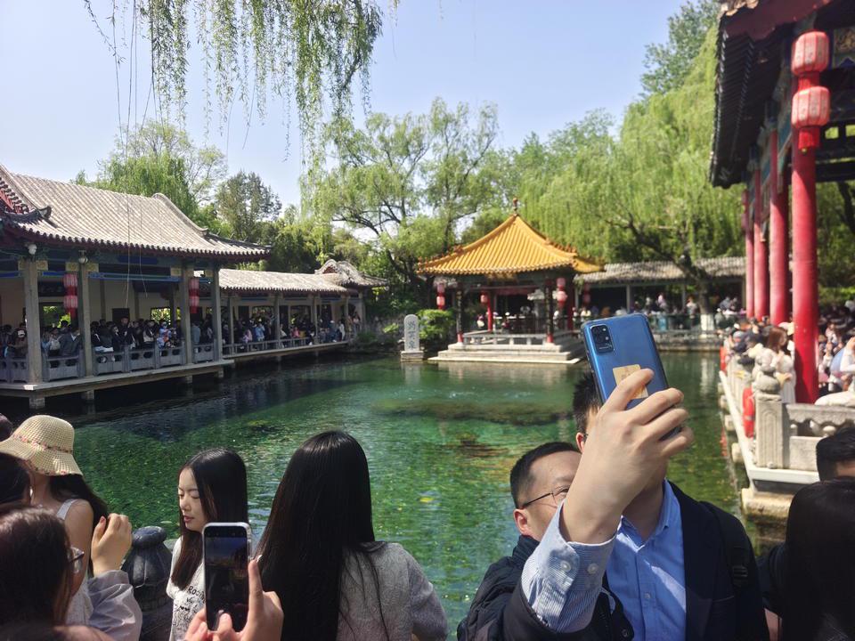 4月19日,济南春和景明,趵突泉景区游客如潮。