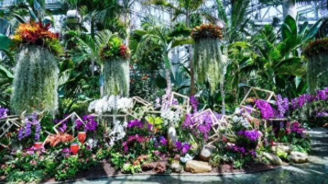 步入热带植物馆,可以开启一场通往兰花世界的旅程——来自中国科学院西双版纳热带植物园、华南国家植物园以及上海植物园的珍贵兰花齐聚于此。
