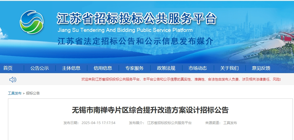 无锡市南禅寺片区综合提升改造方案设计招标公告发布