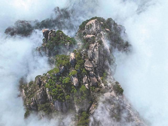 4月23日,黄山风景区天都峰结束冬季维护,恢复对外开放。当日,雨后初霁,云海缭绕,游客在天都峰处登山游玩,欣赏壮观云海。