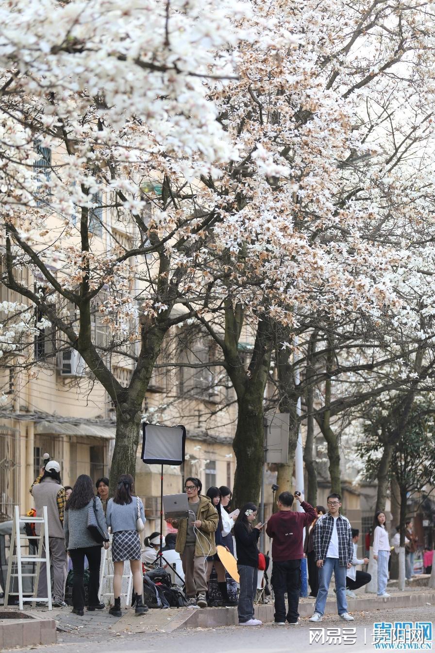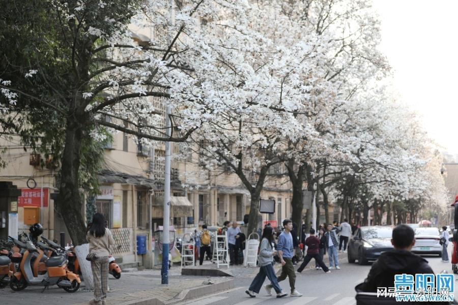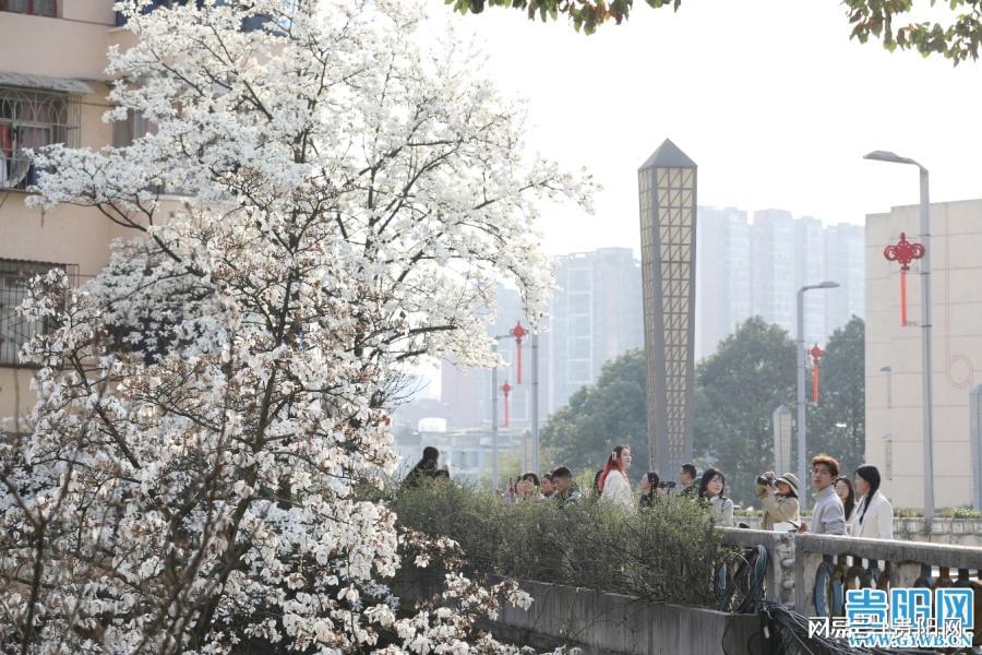 近日,贵阳市白云区朝晖路沿线白玉兰迎春盛放,洁白花瓣如云似雪,在湛蓝晴空下翩然摇曳。暖阳和煦,花香浮动,吸引众多市民游客驻足观赏。