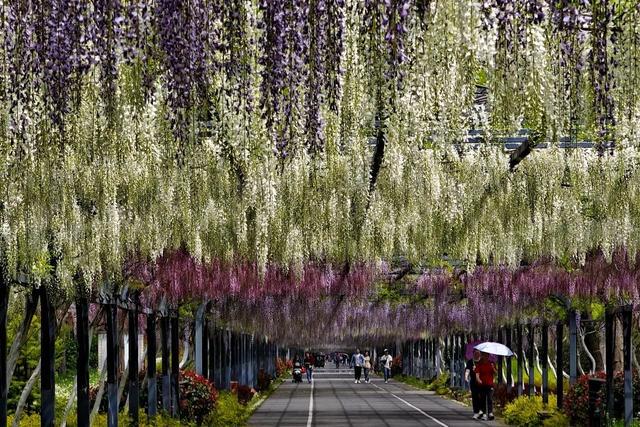 走进樱花紫藤展区,百樱林是你不可错过的浪漫之地,粉白色的樱花如云似霞,让人沉醉不已。记得捕捉这些浪漫瞬间,让回忆定格在这美好的春日时光里。待到紫藤花开时节,大片紫色长穗花藤交错垂落,形成一条浪漫的花雨长廊。站在花架下轻轻摇晃藤蔓,洒落的花瓣如雨落下,甜蜜感瞬间拉满。