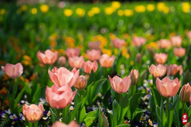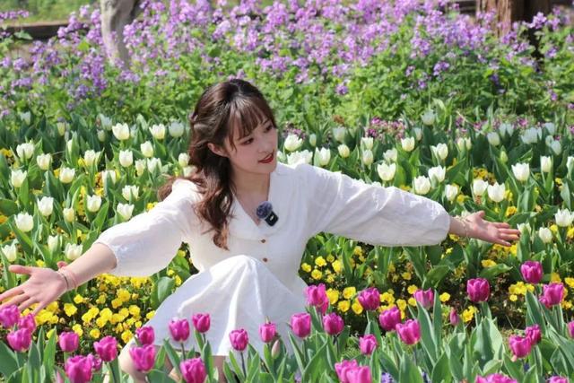 一进入公园,满眼的郁金香花铺展开来,粉、红、黄、紫的花朵在微风中摇曳,为春天奏响最美的序曲,大片绽放的郁金香,与蓝天白云相映成趣,随手一拍,都是春天的唯美画面。牵手在花境中漫步,感受春日气息,在这里拍下你们专属的春日合影吧!