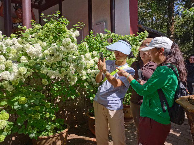 据了解,秀山种植的木绣球为木本绣球,冬季落叶,四月绽放,花叶同生。这些历经岁月沉淀的木绣球,与通海“礼乐名邦”的深厚文化底蕴完美融合,已然成为秀山“四月限定”的文旅名片。游客们在这里,不仅能欣赏到木绣球的清雅风姿,更能在古树掩映的庭院中,感受历史与自然交织的独特魅力,邂逅秀山历史底蕴中的“限定浪漫”。