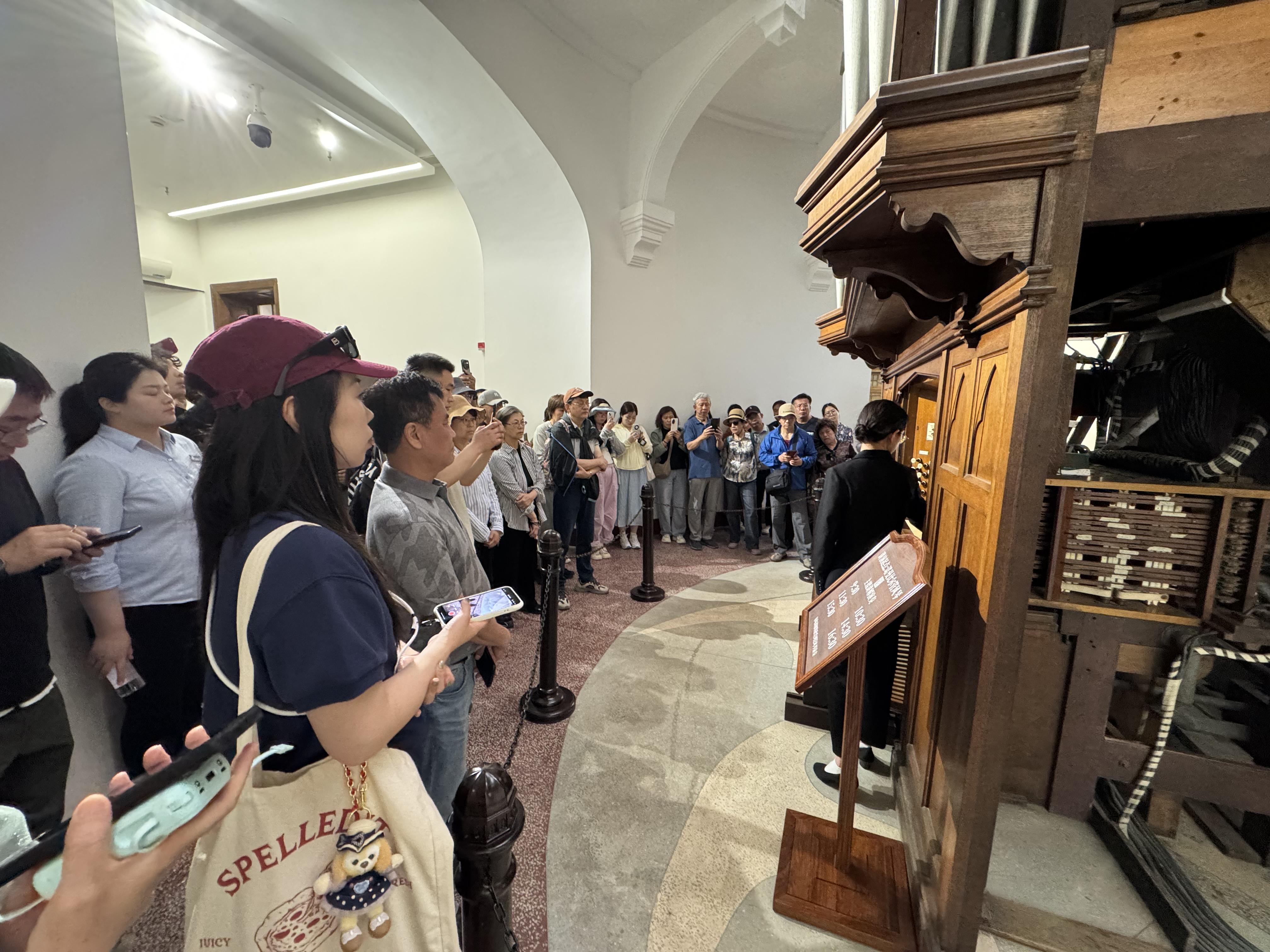 面对现场上百名全国各地慕名而来的游客观众,管风琴首席维修师刘嘉杰正在讲解如何修复古老的管风琴。也正是他,与十多个国家的40多名工程师一起,耗时四年修复了“卡萨翁700”管风琴。聆听的人群中不时有人举手发问,浓厚的学术氛围弥漫全场。