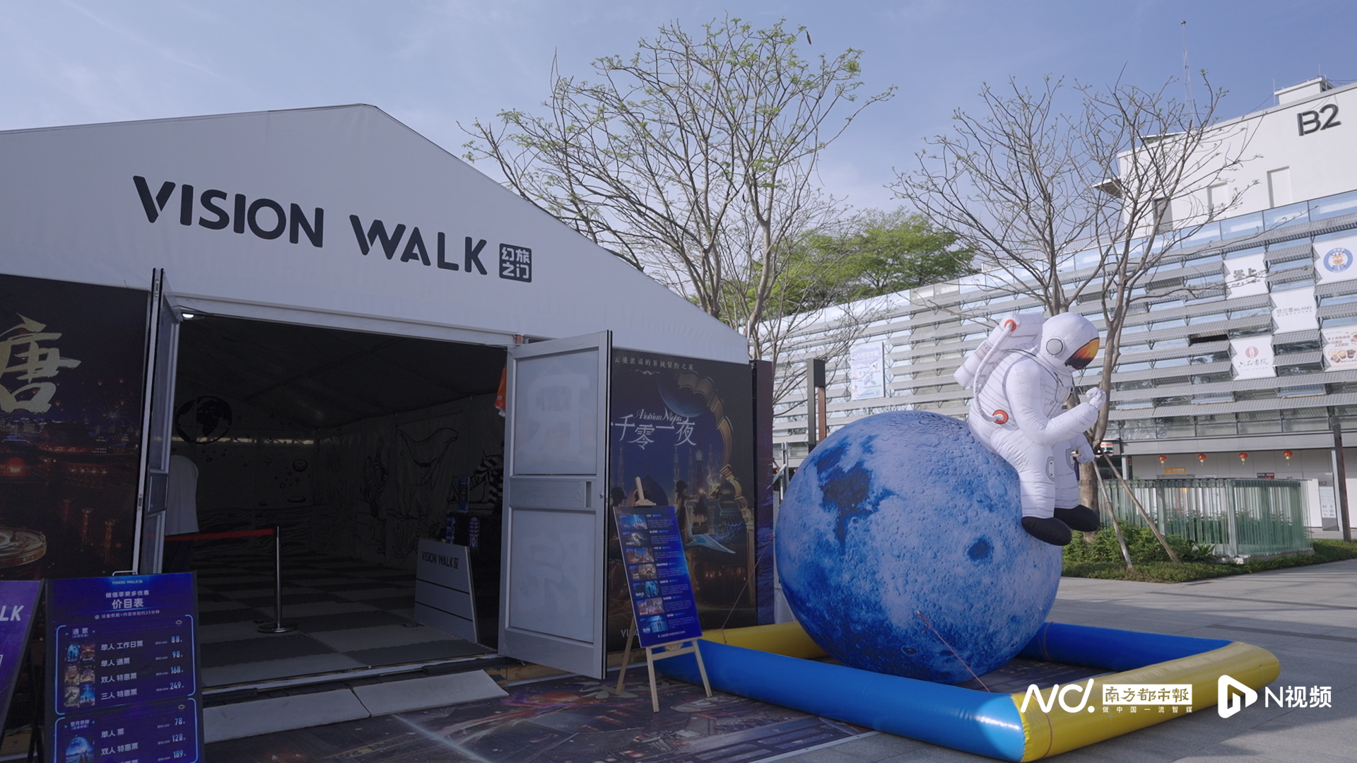 镜盒装置旁边设有vision walk, 戴上VR设备,和小朋友一起探寻海底两万里等多个场景,感受与海底生物擦肩而过,也可以到达月球,探索宏大的月球溶洞基地,探索神秘水冰,科幻之旅一触即发。