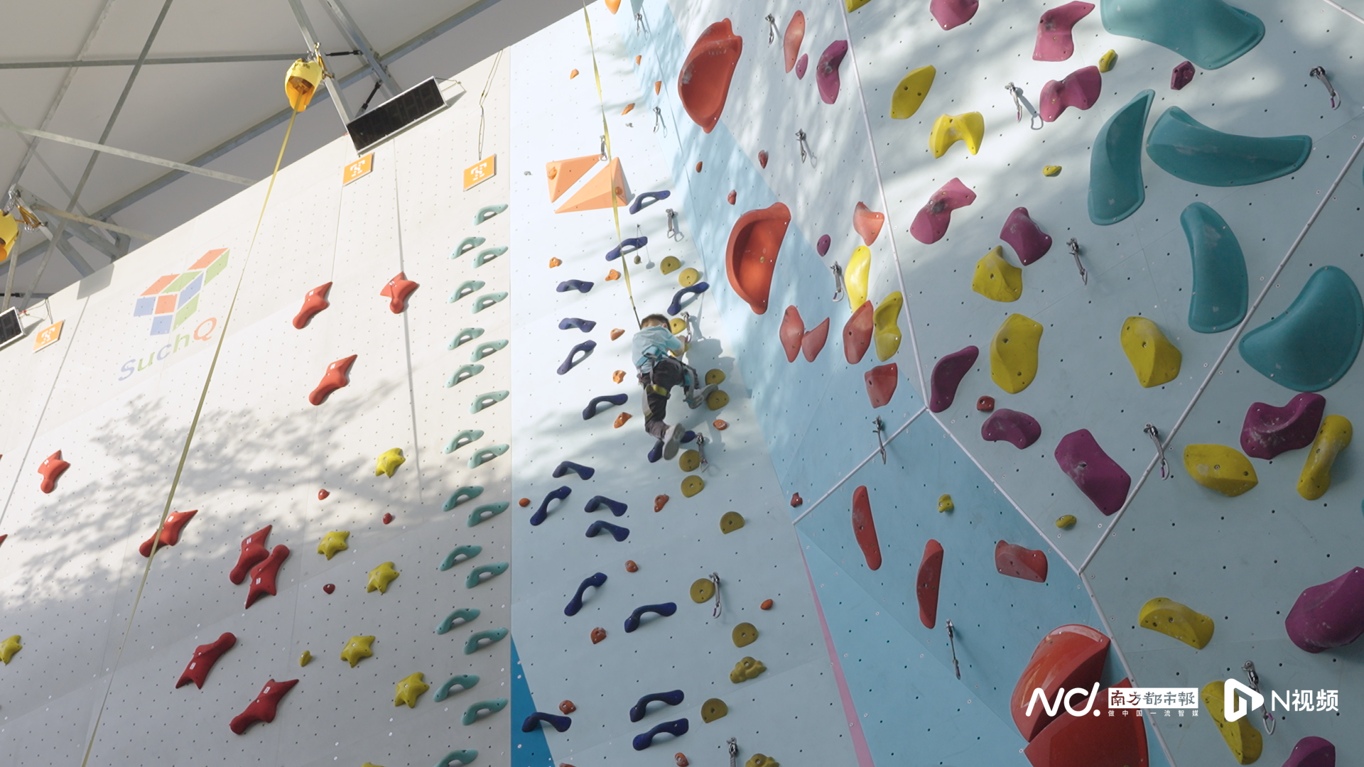 街区的中央还设有儿童游乐区,大型攀爬架、滑滑梯等都安排上了,想上难度的话,这里还有大型攀岩活动,大小朋友都可以在这里玩上大半天。