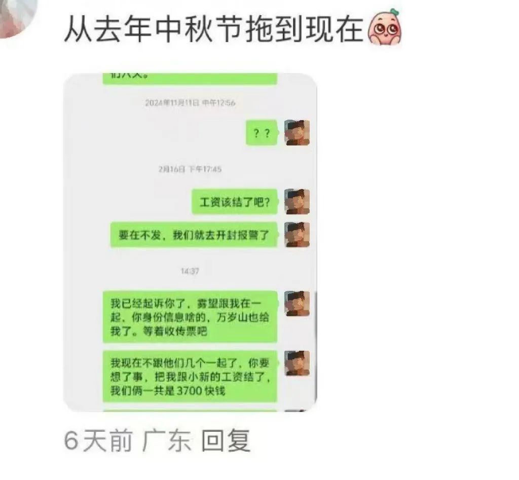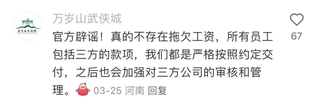 面对舆论压力,万岁山紧急发布辟谣声明:不存在拖欠工资。将加强对三方公司的审核和管理。