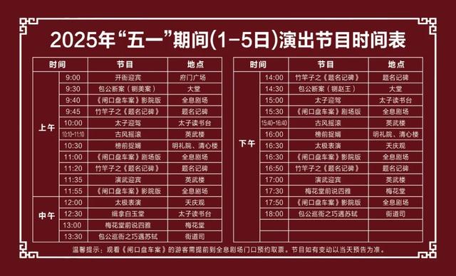 除新节目外,《闸口盘车案》《太子迎驾》《榜前捉婿》《演武迎宾》等原有节目,“五一”假期将继续精彩上演。同时,也会有演员扮演的NPC(非玩家角色)在景区内与游客偶遇互动,增添游园乐趣。