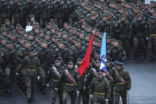 俄罗斯军人在年度胜利日阅兵式彩排。