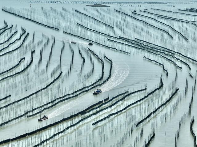 霞浦素有 “中国最美滩涂” 美誉,光影变幻无穷,四季景致各有千秋。五月间,潮水退去,滩涂裸露,渔民劳作其间,紫菜架纵横交错,晨光暮色里,皆是灵动迷人的绝美景致。