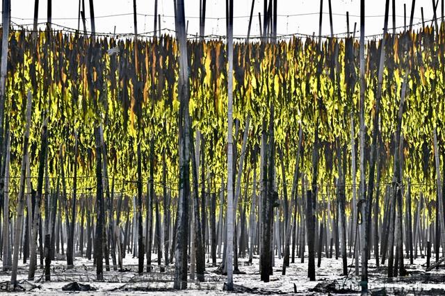 退潮后的滩涂上挂满晾晒的海带。新华社记者 姜克红 摄
