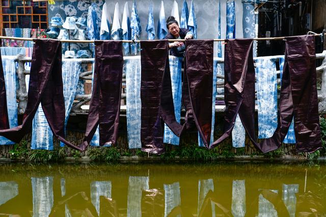 肇兴侗寨里的村民在晾晒侗布。新华社记者 杨文斌 摄