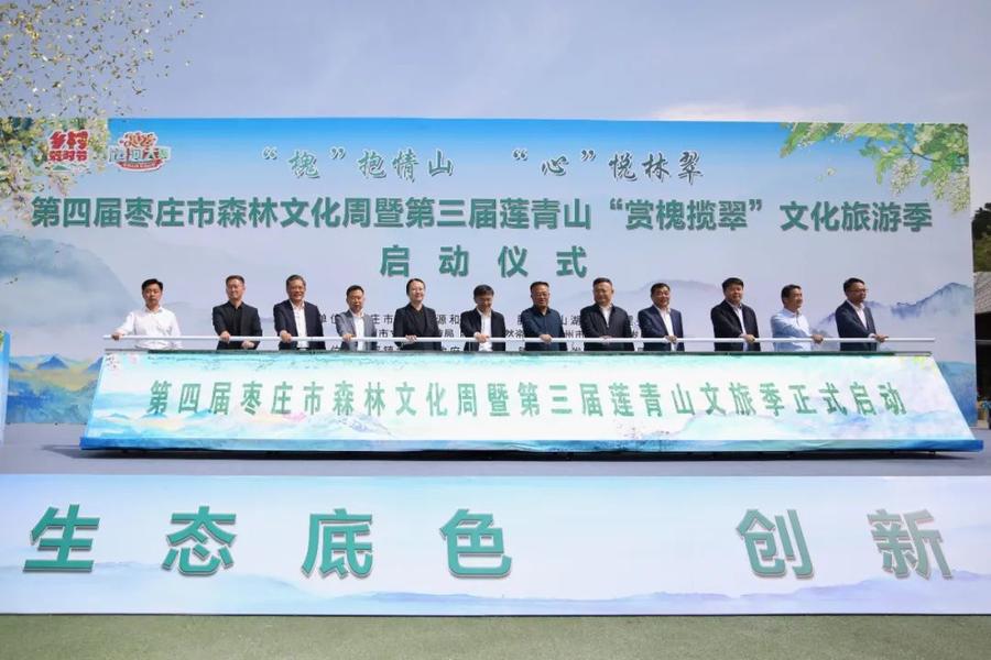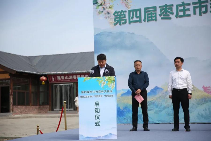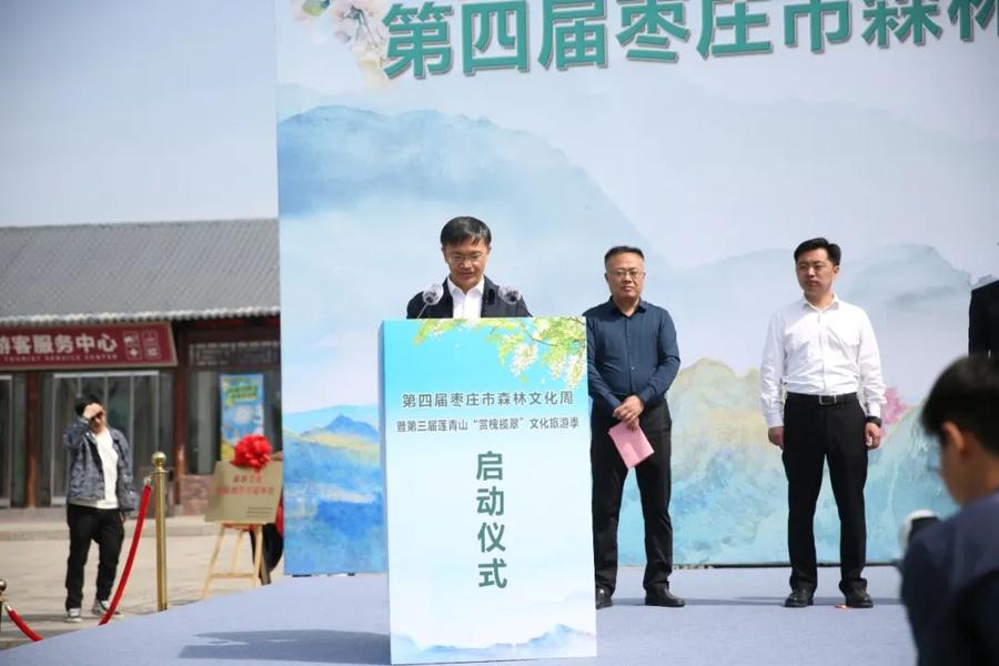 4月27日,第四届枣庄市森林文化周暨第三届莲青山“赏槐揽翠”文化旅游季启动仪式在滕州市东郭镇莲青山风景区隆重举行。本届森林文化周以“守护生态底色 创新绿色发展”为主题,由枣庄市自然资源和规划局、滕州微山湖湿地管理委员会、滕州市文化和旅游局、滕州市林业事业发展中心主办;东郭镇党委、政府,滕州文旅发展集团有限公司,滕州莲青山风景区管理有限公司承办。滕州市政府副市长马金安主持仪式。