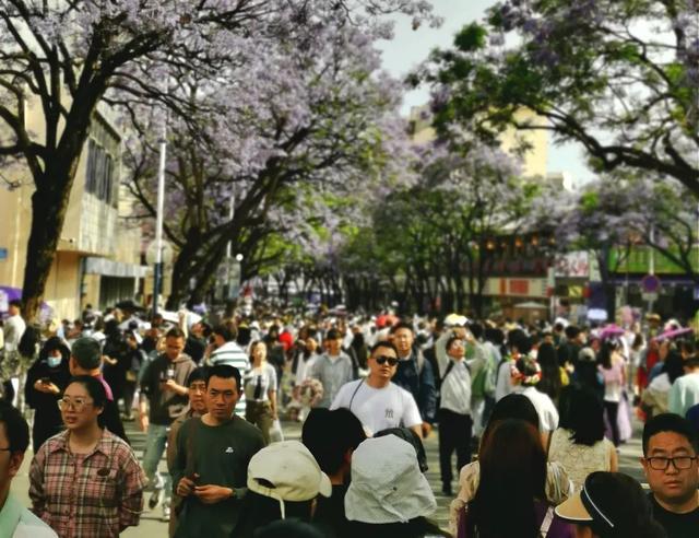 春城路的蓝花楹,是前两年才被开发出来的网红打卡地,知道的人很有限,但这丝毫不影响这里的美景。