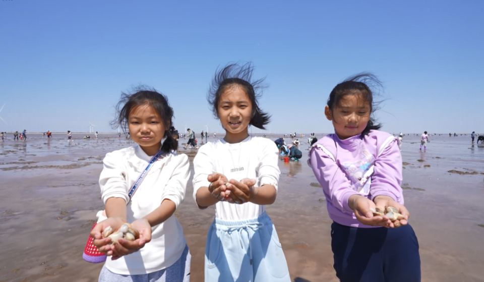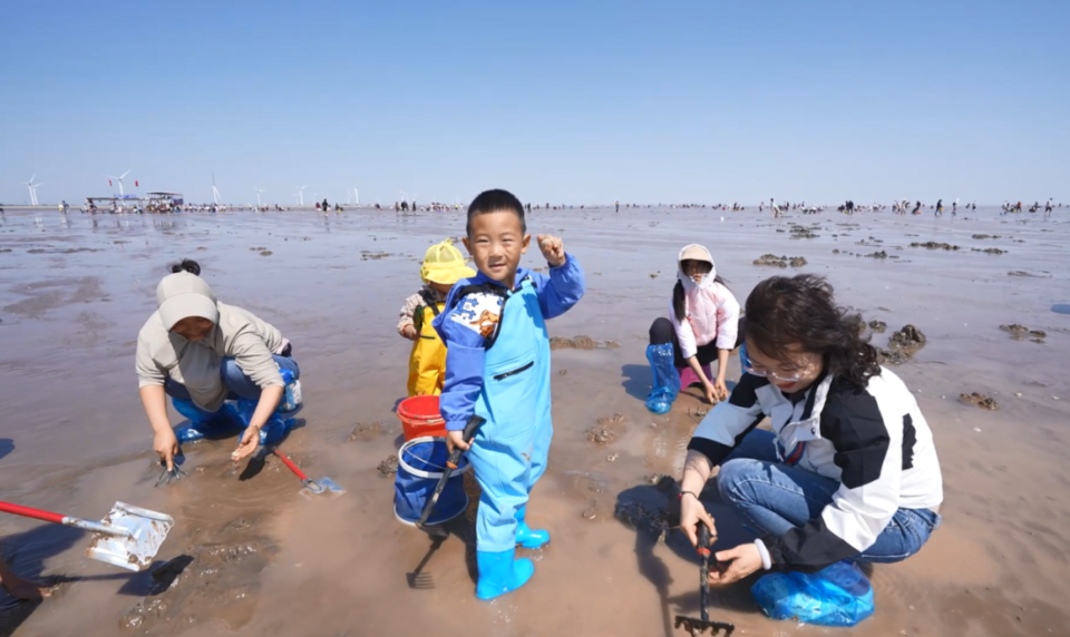 5月1日七点多开始,赶早的游客已经陆续到达金泥湾,大家带着激动和兴奋的心情,乘坐一辆辆宽敞的赶海摆渡车,带着各种赶海装备奔向大海。海滩深处,游客或挖或耙,白蛤、花蛤、文蛤等丰富海产,逐渐成为游客们的“战果”。朋友们收获着大海的馈赠,也感受到大自然带来的快乐。