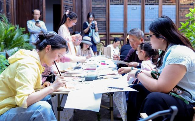 与此同时,从下午2时开始,丰富的线下活动依次进行。在文保老宅的门楣下,以仓城前世今生为主题的讲座将老建筑背后的故事娓娓道来;在风格各异的网红艺术咖啡厅,帆布包拓印,非遗口金包制作,手绘团扇等课程让亲子家庭共享美好时光。入夜,流行乐队将气氛点燃,电子琴伴着架子鼓的节奏将烟火气演绎。