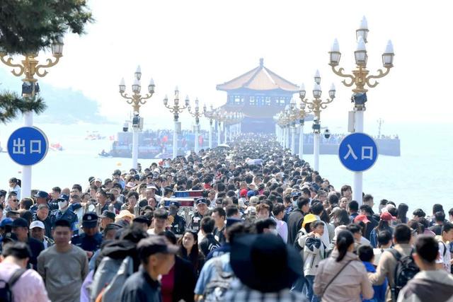 而另一边,青岛的栈桥也迎来了客流量高峰。