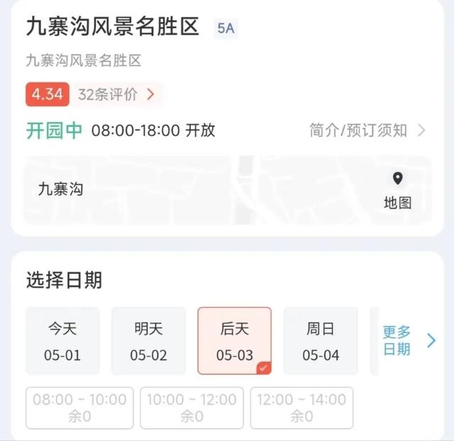 九寨沟景区:5月2日和5月3日门票已售罄