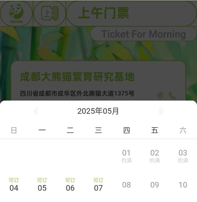 成都大熊猫繁育研究基地:5月2日至3日上午场次已约满
