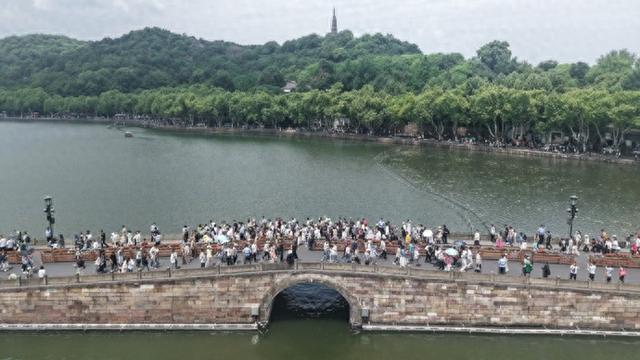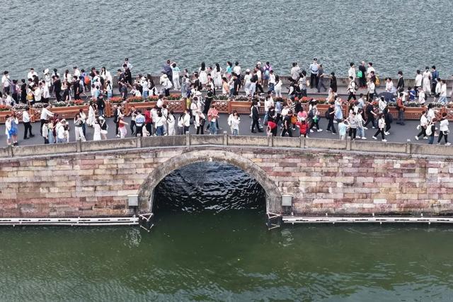 5月1日上午10点,杭州的西湖断桥,也已开启大流量模式。