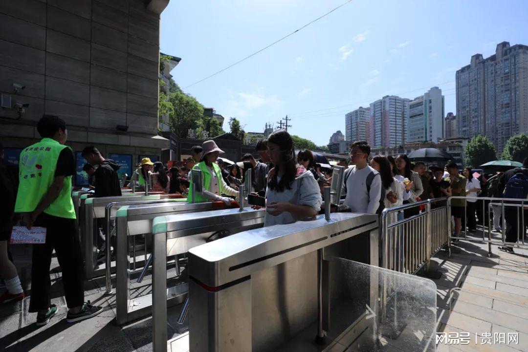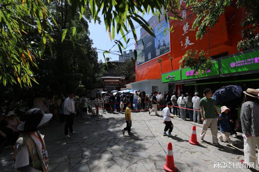 上午十时,记者在黔灵山公园南大门处看到,排队进入景区的市民游客络绎不绝,工作人员、志愿者热情地引导游客有序免费购票、检票入园。