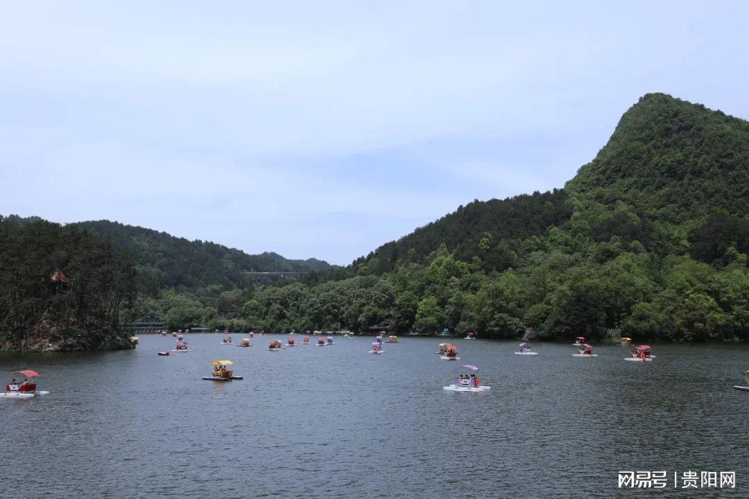 在黔灵湖,青山绿水相映成趣,不少游客乘舟湖上,感受爽爽贵阳的舒适气候和生态之美。