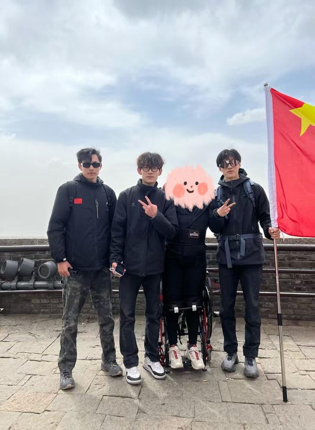 落雾和小伙伴与轮椅小姐姐的合影。受访者供图