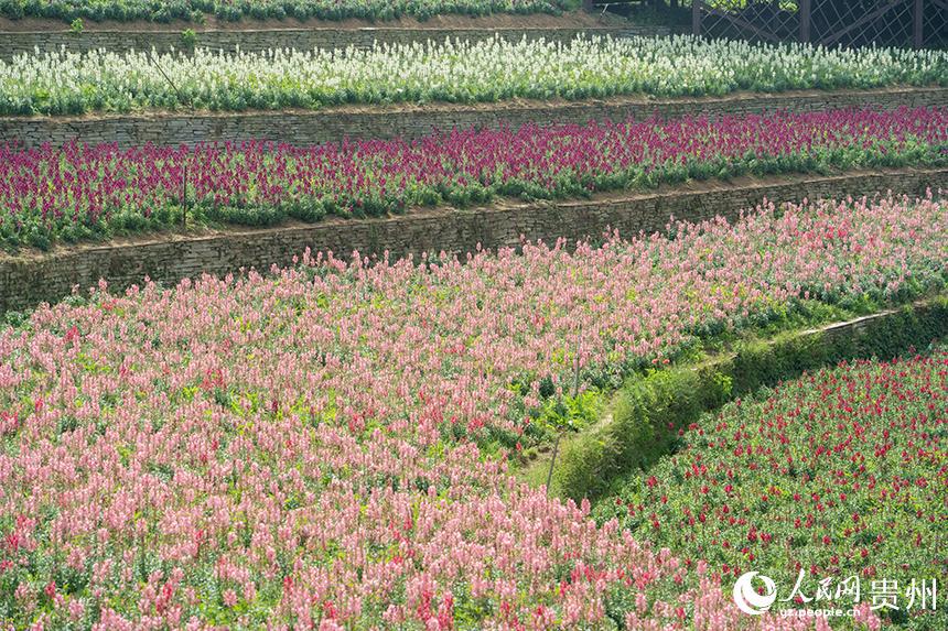 人民网贵阳5月3日电 (阳茜)5月2日,位于贵州省贵阳市乌当区羊昌镇的花画小镇如同一幅被自然打翻的调色盘,千亩花海在暖阳下肆意舒展,蜂蝶翩跹。花画小镇的斑斓花海,吸引八方游客纷至沓来,迎来了五一旅游热潮。