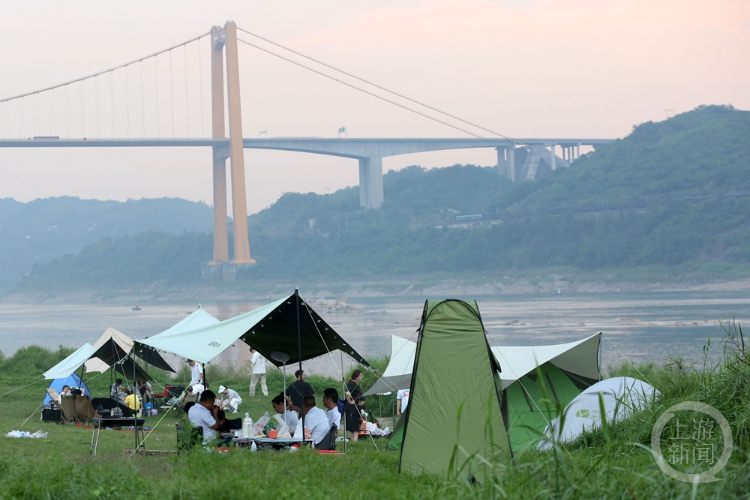 5月3日,重庆市巴南区麻柳嘴镇南坪坝草场,众多市民和游客前来露营休闲,亲近自然,乐享假期。