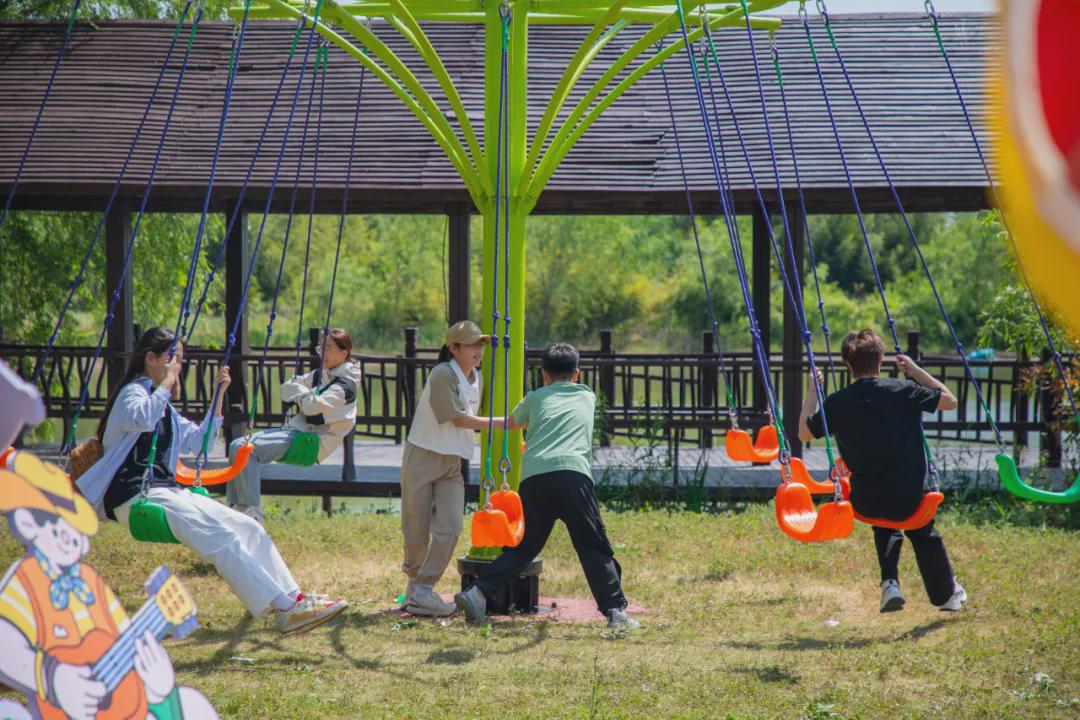 锦鲤嬉戏,孔雀开屏,自然野趣尽收眼底。双龙湖观鸟园,骑行自由、VR 沉浸、小火车悠然,萌宠互动,欢乐连线。新添游乐设施,色彩斑斓转盘飞旋,跷跷板、跳床、海盗船应有尽有,畅享科技乐趣。在这片生态净土,邂逅自在,感受人与自然的和谐共生。