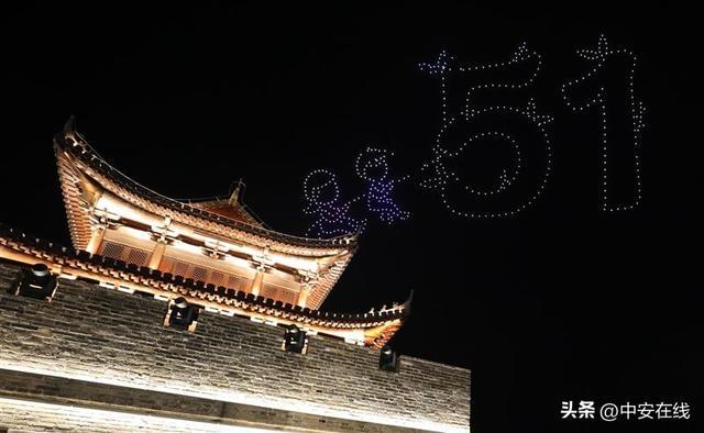 大南门特色文化街无人机表演圈粉无数。全媒体记者 江胜 摄