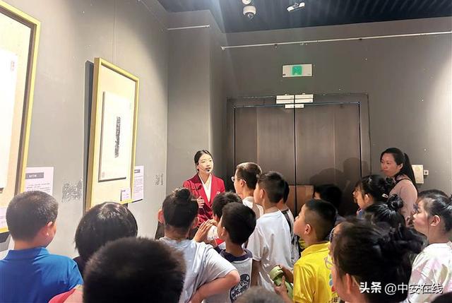 在一楼的《曹操宗族墓群文字拓片巡展》临展专区,小朋友们津津有味地听工作人员讲解古老文字拓片背后的历史风云。此次展览精选80幅东汉恒帝、灵帝时期曹操宗族墓群文字砖拓片及10块文字砖复印件,囊括隶书、篆书、真书、行书、章草、今草等,承载信息丰富。