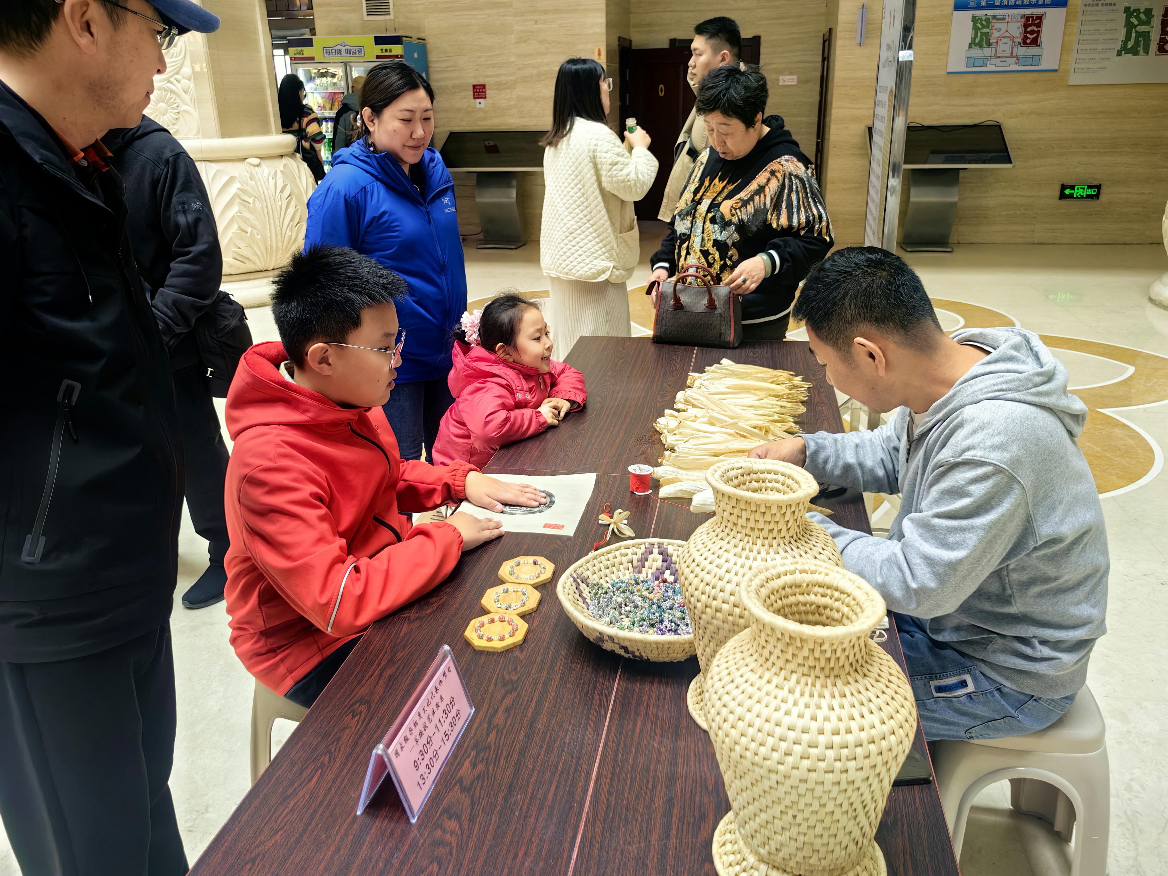 穿过一楼大厅,在“非物质文化遗产代表作项目”体验区,草编技艺国家级代表性传承人于建华指尖翻飞,麦秸秆化作栩栩如生的蚂蚱,引得观众争相模仿。“过去麦秸秆是生活材料,老一辈用它编出各种实用的生活用品,现在成了文化传承的载体。”于建华一边示范一边感叹,“希望更多年轻人能把这份老手艺传承下去。”隔壁的糯米人摊位前,彩色面团在传承人张巧卉手中幻化成朝鲜族少女、孙悟空等造型,孩童踮着脚尖围观,随着新造型的呈现发出阵阵惊叹。