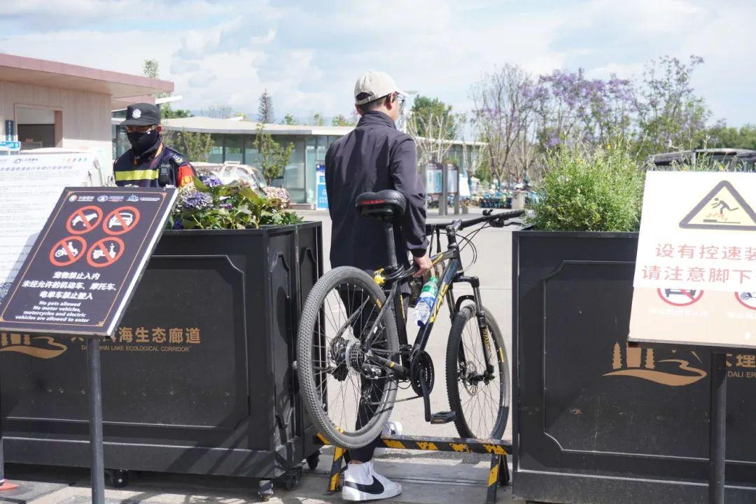 最近,有许多市民和游客发现在洱海生态廊道阳南溪入口处新增了横杆,大家骑行自行车进入时,需要下车抬车进入。