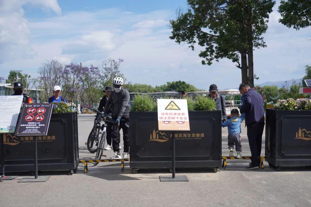 我们在这里值守见到过好几次自行车撞到行人、儿童的情况,因此加装了控速装置,廊道也发布了《洱海生态廊道竞速自行车骑行安全协议》。在此我们也呼吁骑行爱好者在骑行过程中控制速度,注意交通及行人安全,注意沿线的限速提示。