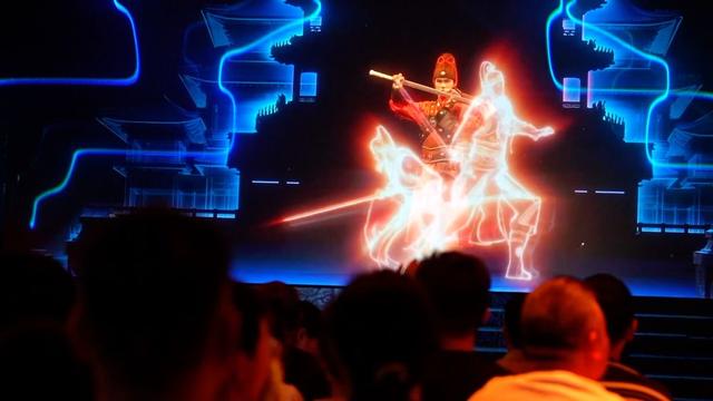 在开封府景区,大型全息沉浸互动剧目《闸口盘车案》,依托全息立体成像、裸眼3D视效和虚拟现实交互技术,游客化身“大宋官员”与“包公”互动,抽丝剥茧破解谜案。