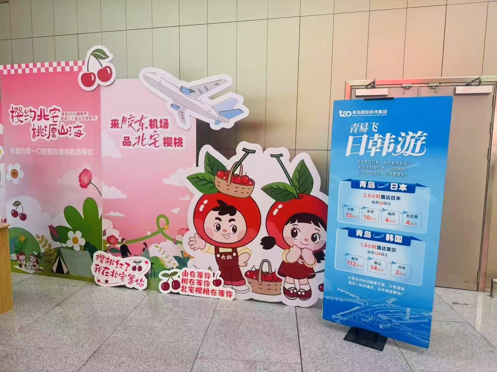 日前,青岛机场“青易飞 打着飞的来吃樱桃”樱桃文化节正式启动,活动当日送出近千份新鲜的樱桃。现场工作人员介绍:“这些樱桃都是清晨从崂山北宅现摘直送机场的,让抵青旅客落地即能感受‘樱为有你’的城市温度。”借助机场这一“空中门户”,旅客一落地就能尝到这份季节限定的“青岛味道”。