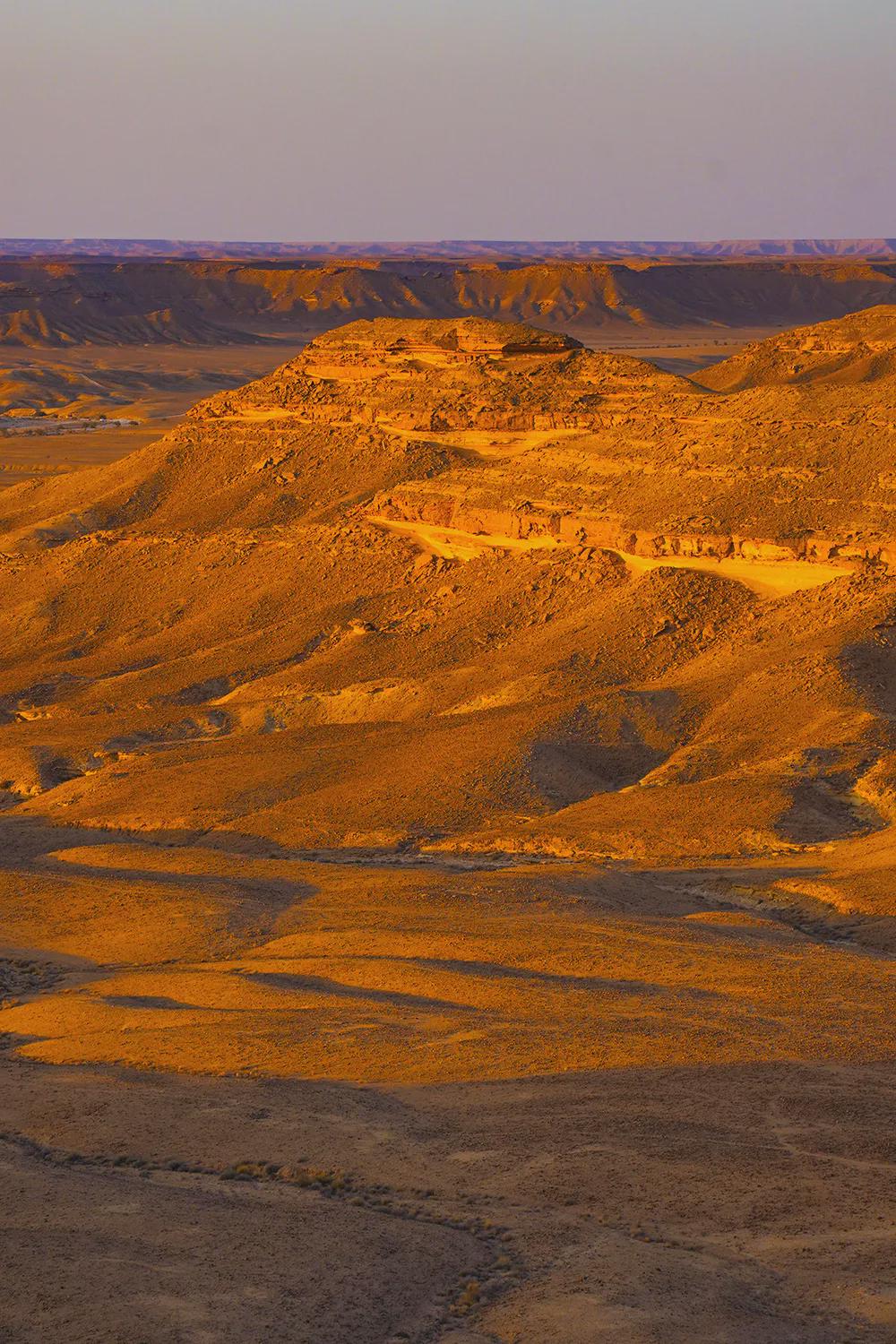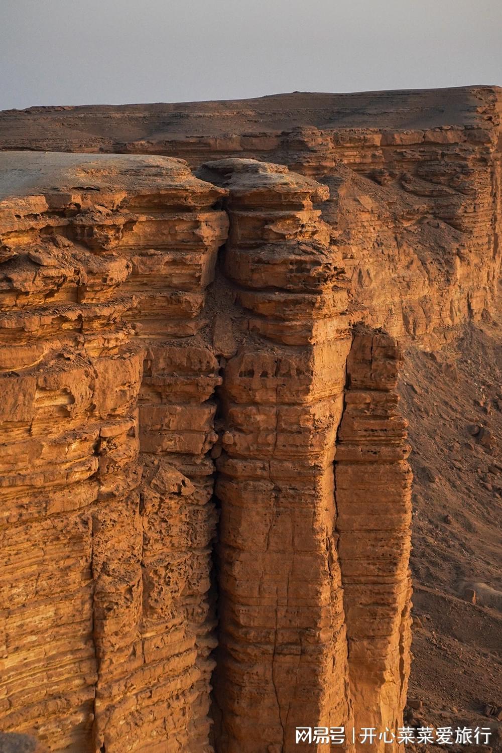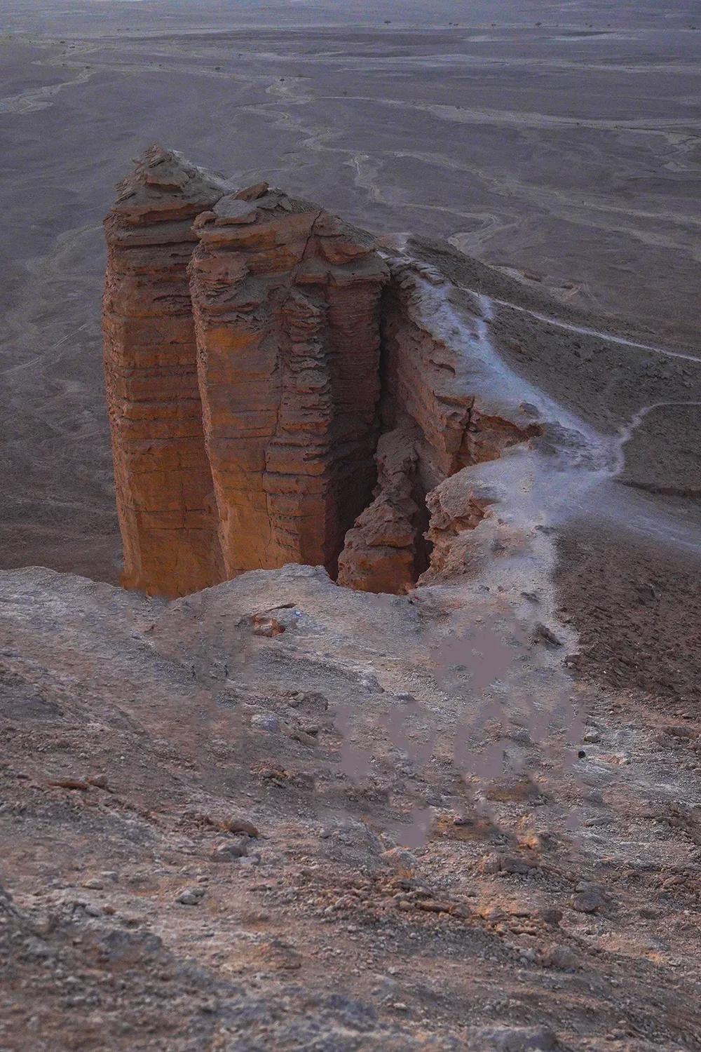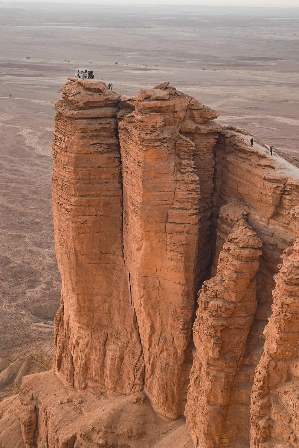 世界之崖,意思是世界的尽头,其实是沙特利雅得图瓦克山脉的尽头。绵延800多公里的图瓦克山脉,在这里戛然而止,形成一片落差近30米左右的断崖。这里距离利雅得城区大约200公里左右。